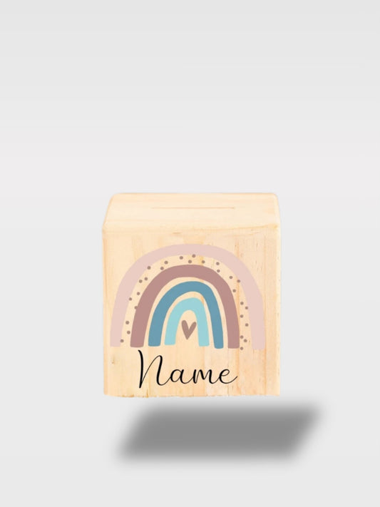 Tirelire Enfant Personnalisée Arc-En-Ciel En Bois Avec Prénom