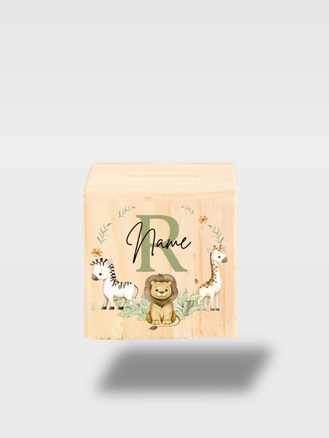 Tirelire Bébé Personnalisée Animaux Safari En Bois Avec Prénom