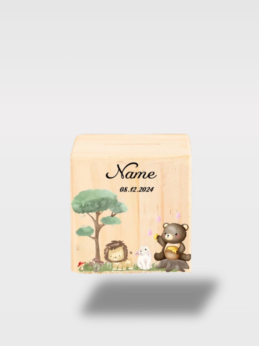 Vous qui aimez les objets à la fois utiles et décoratifs, laissez-vous séduire par cette tirelire personnalisée royaume des animaux bois, cube décoratif et pratique. Chaque modèle peut être personnalisé avec le prénom et la date de naissance, avec plusieurs variantes d’animaux disponibles pour un cadeau unique et original. Elle allie plaisir d'épargner et touche de fantaisie, transformant chaque pièce mise de côté en un moment agréable.