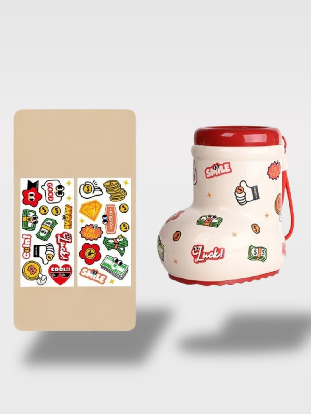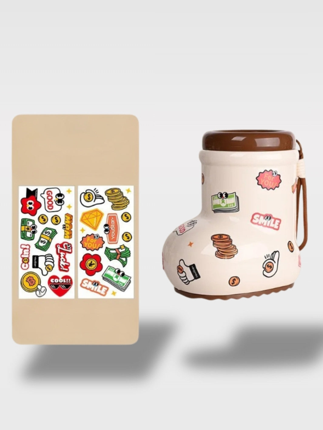 Vous qui aimez les objets à la fois utiles et décoratifs, laissez-vous séduire par cette tirelire botte à personnaliser, livrée avec stickers autocollants, disponible en deux variantes, ludique et créative, idéale pour enfants et décoration. Elle allie plaisir d'épargner et touche de fantaisie, transformant chaque pièce mise de côté en un moment agréable.