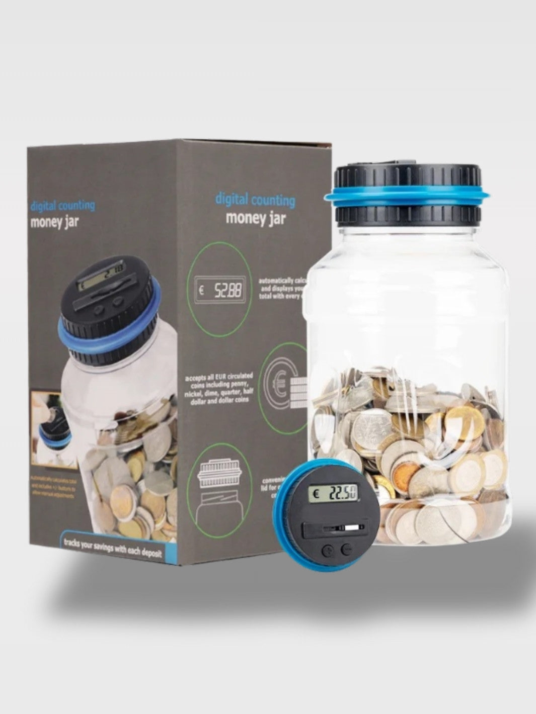 Suivez vos économies facilement avec notre Tirelire Compteur Numérique à écran LCD, disponible en plusieurs types de monnaie