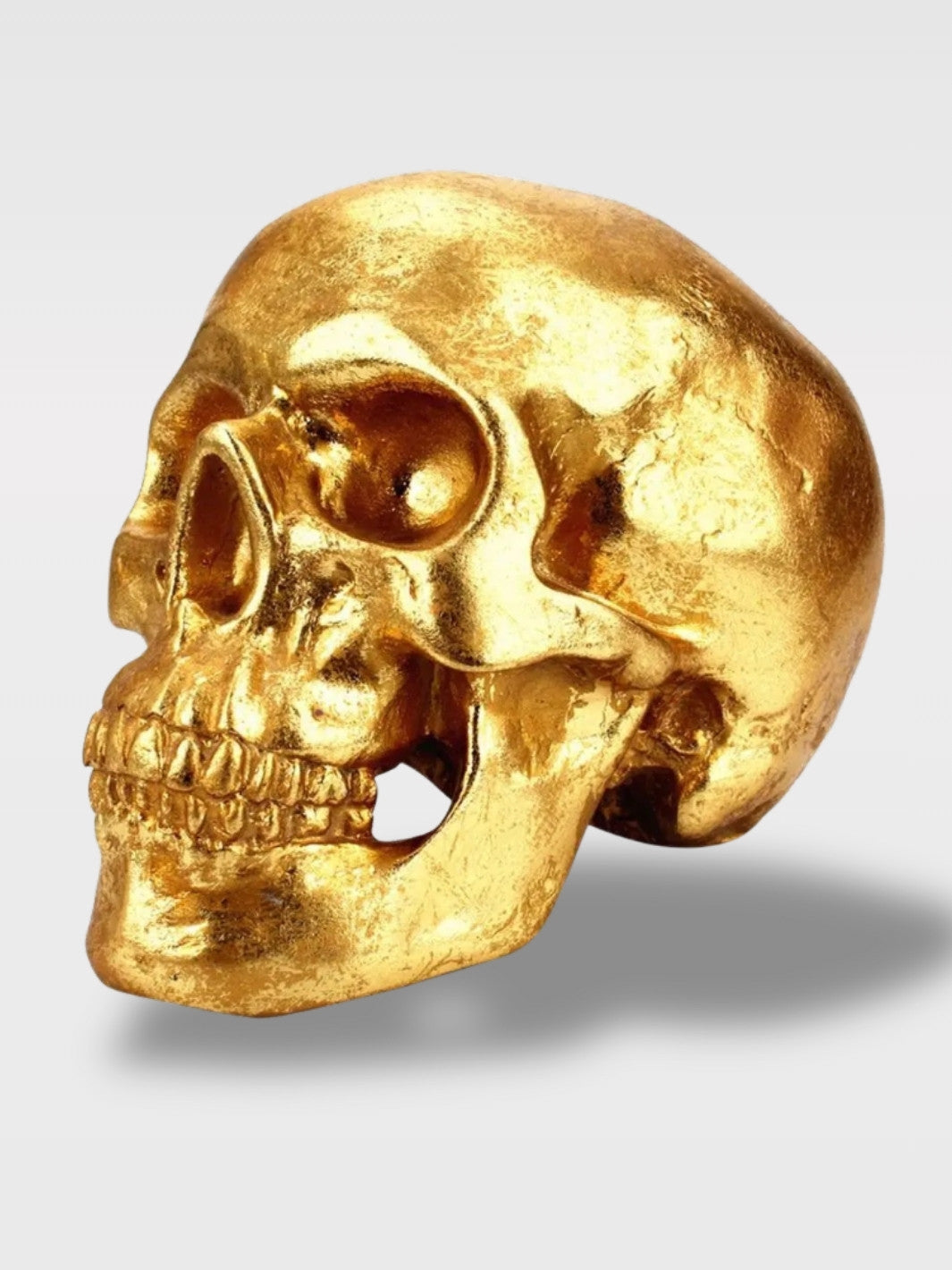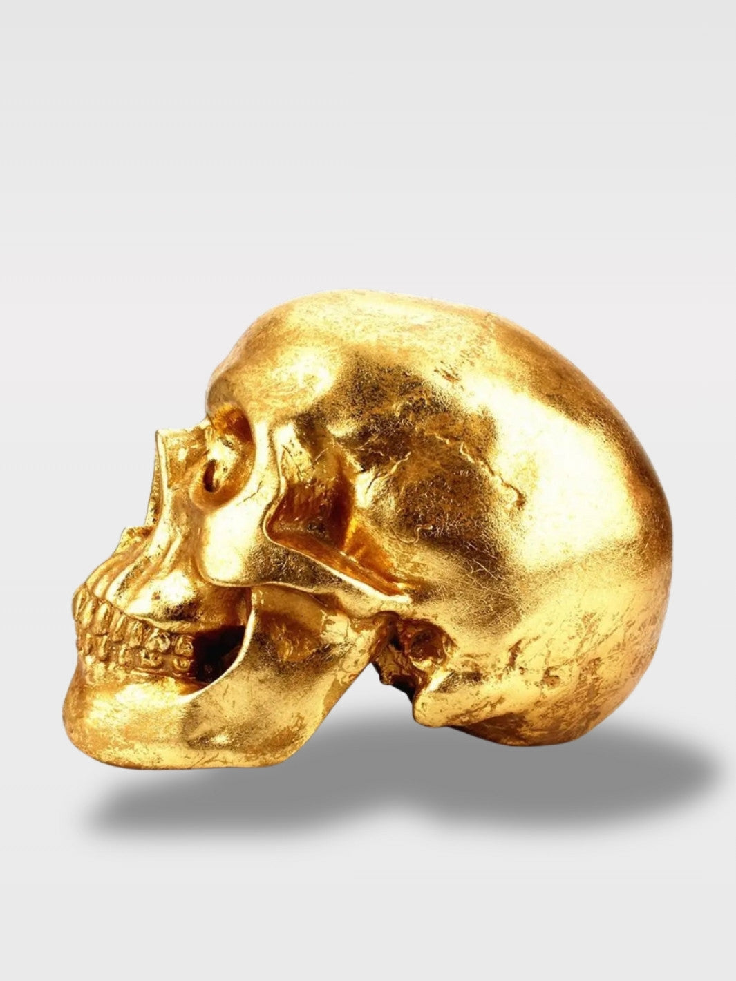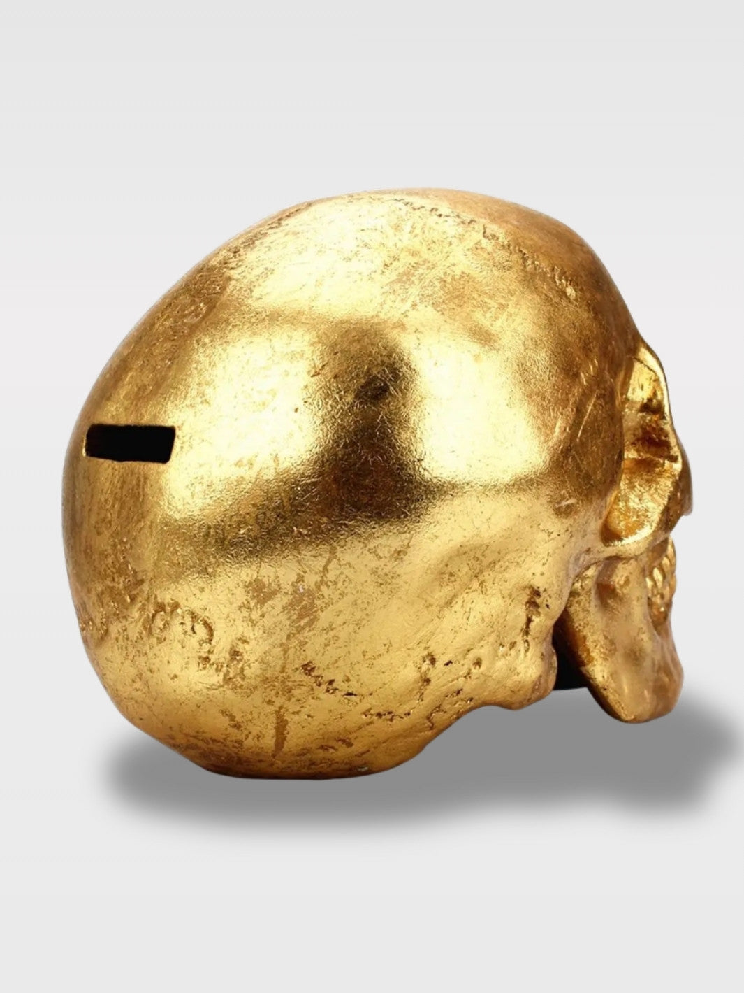 Crâne tirelire doré décoratif et porte-bonheur de Mon Premier Trésor, parfait pour la décoration et pour économiser facilement