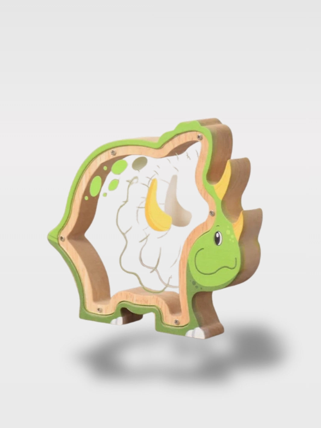 Tirelire Dinosaure Bois avec Fenêtre Transparente