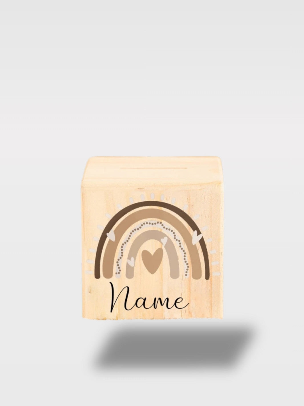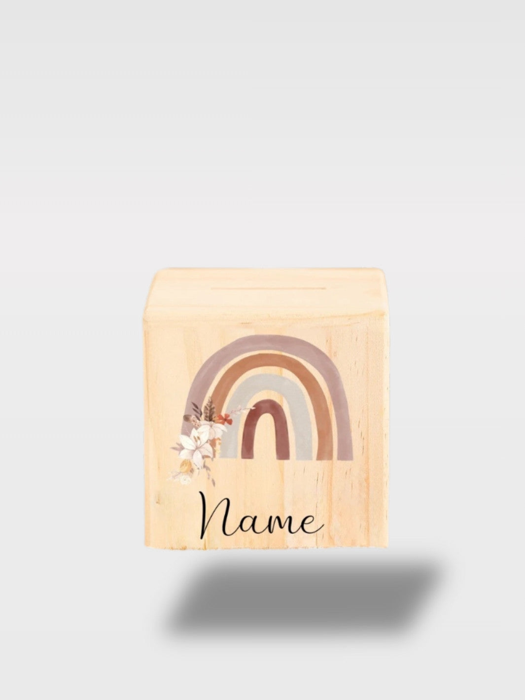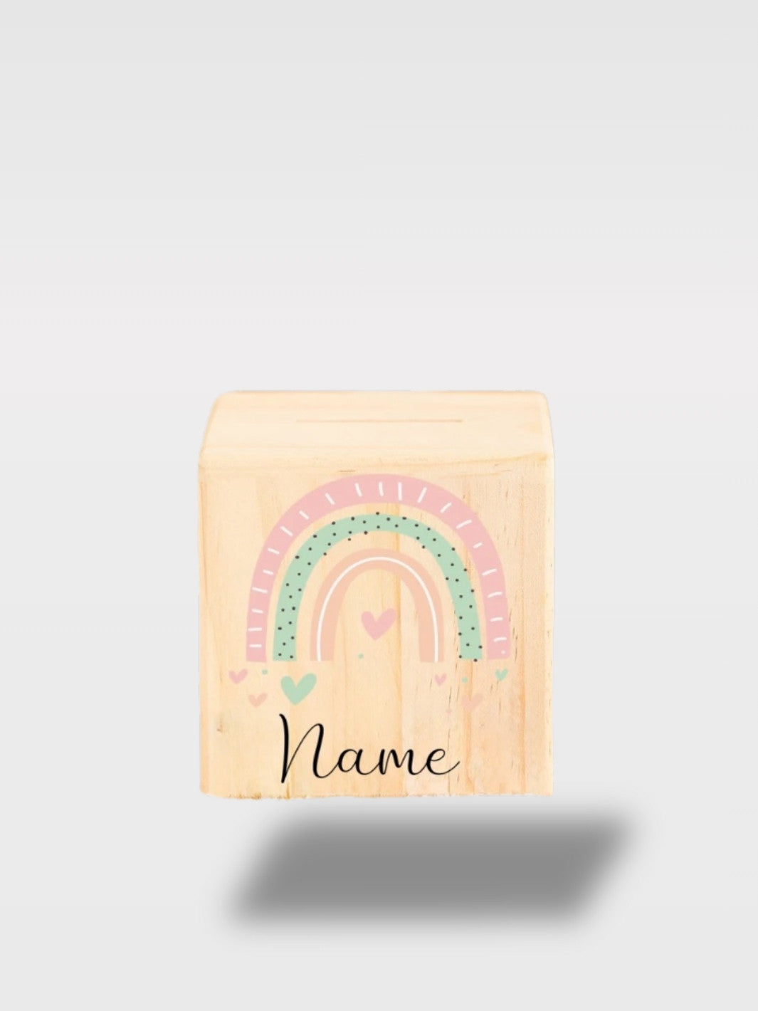 Tirelire Enfant Personnalisée Arc-En-Ciel En Bois Avec Prénom