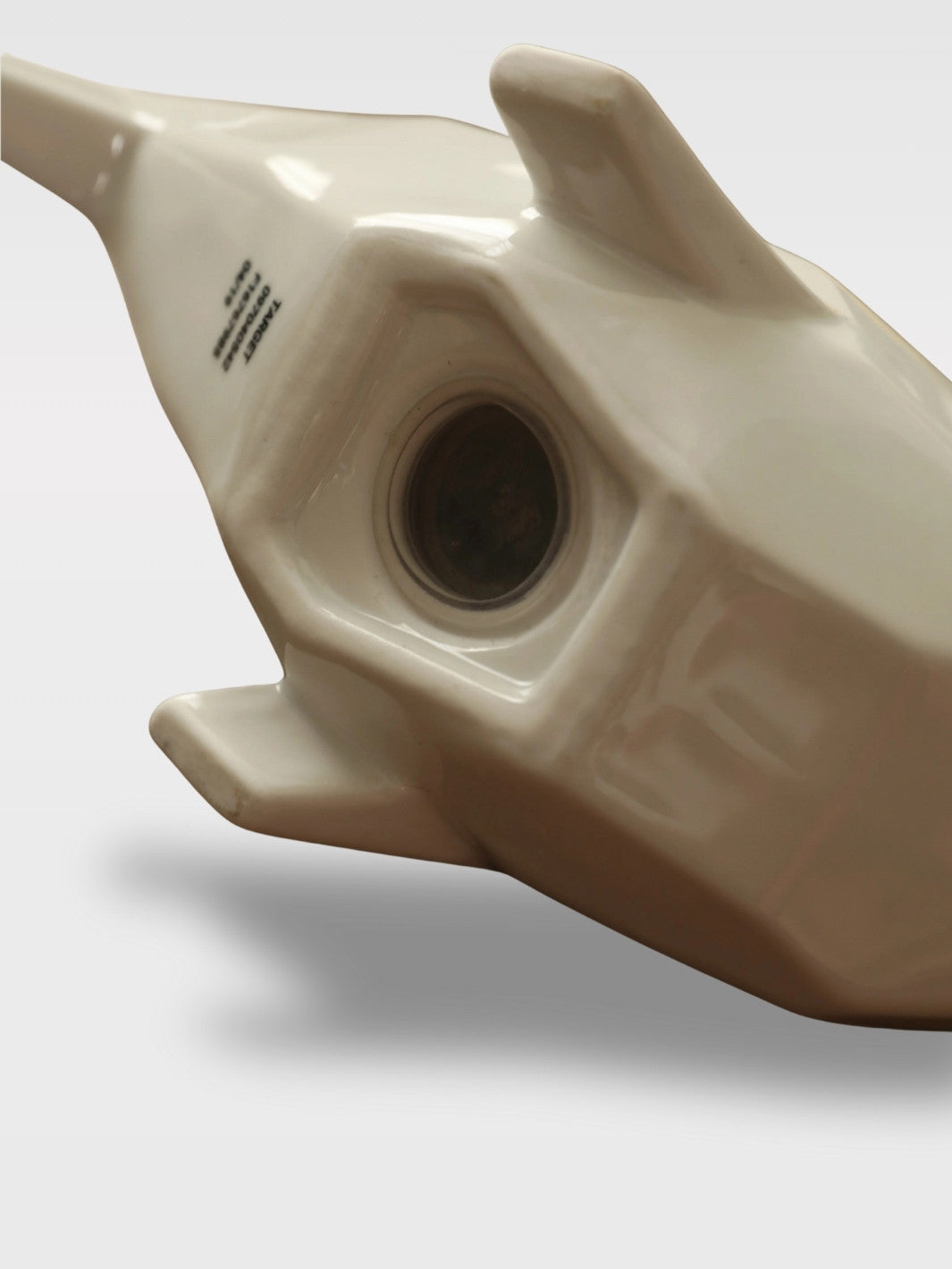 Vous qui aimez les objets à la fois utiles et décoratifs, laissez-vous séduire par cette tirelire requin origami en céramique blanche. Elle allie plaisir d'épargner et touche de fantaisie, transformant chaque pièce mise de côté en un moment agréable.